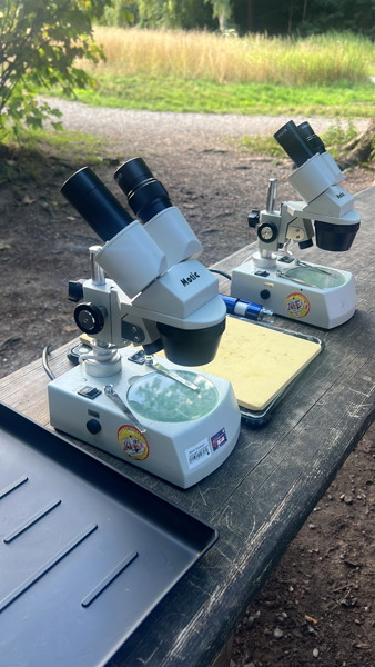 Danach alles fein säuberlich unters Mikroskop gelegt, beobachtet, betrachtet und anschließend zurück in die Natur.