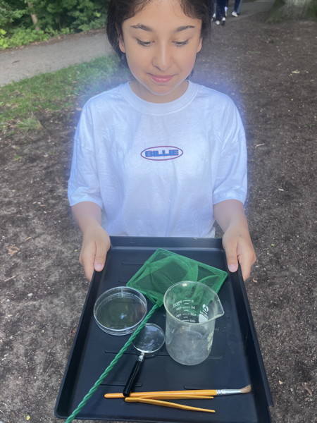 Und nun wurde fleißig gesammelt, was man so im nahegelegenen Teich fand und was einen interessieren könnte.